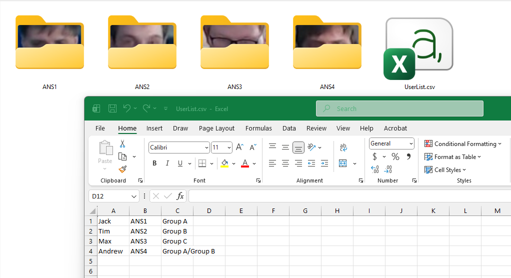 .csvfile named "UserList":