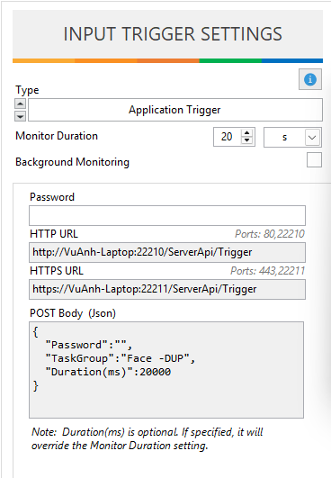 • Password (optional): Set a password for the RESTful API to secure external trigger requests.