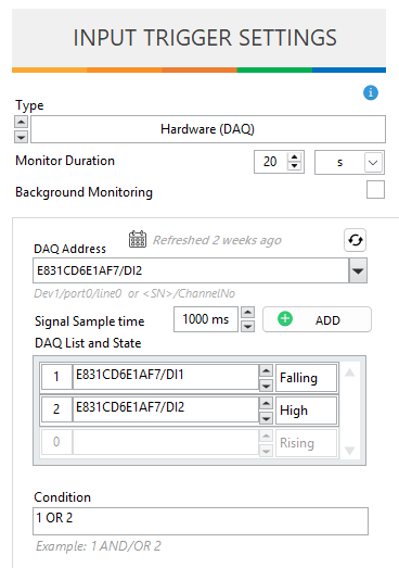 • DAQ Address: Scan and select avaliable digital inputs (DI) on the network. Press Add to include the DI to the list.