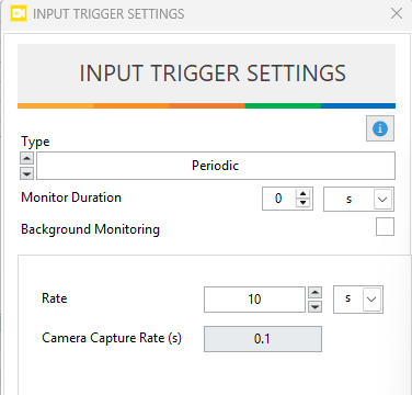• Rate: How often the system sends a trigger to execute the task. (Note: the rate cannot be faster than the camera acquisition rate)