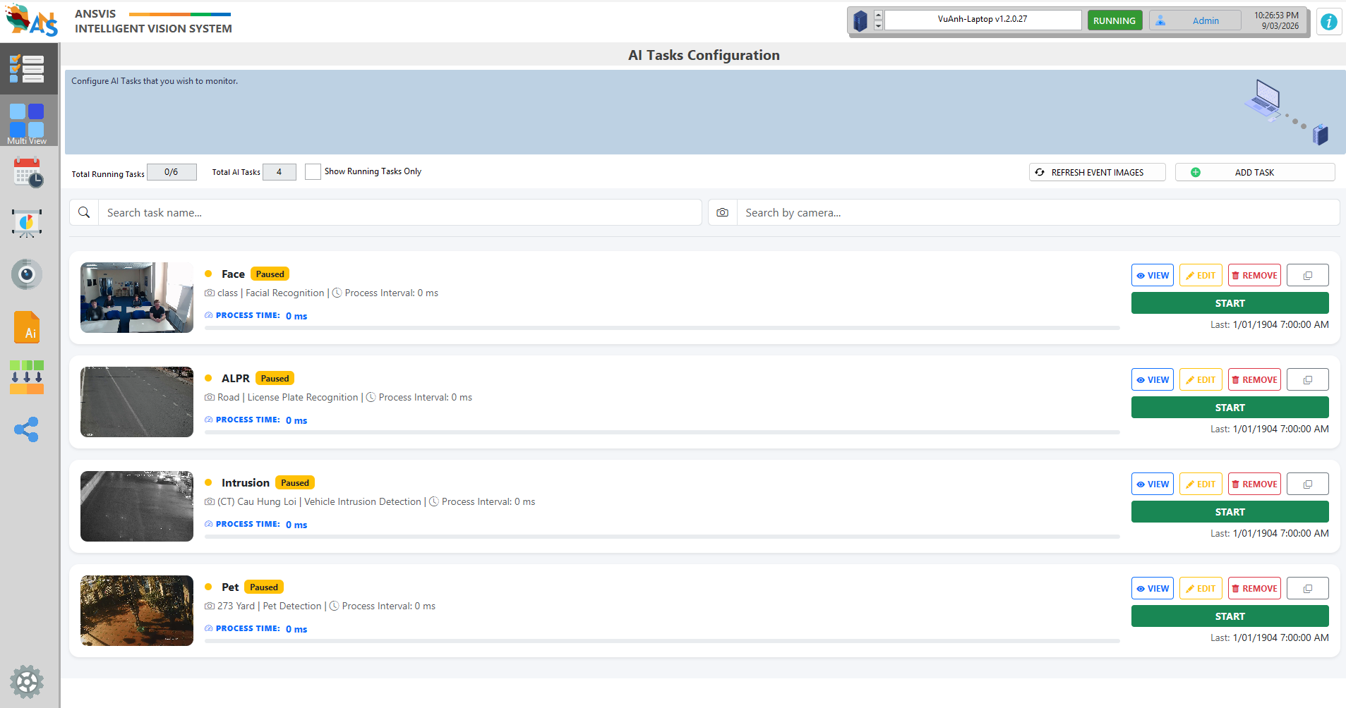 - View live streams of AI Tasks, similar to a Video Management System (VMS)