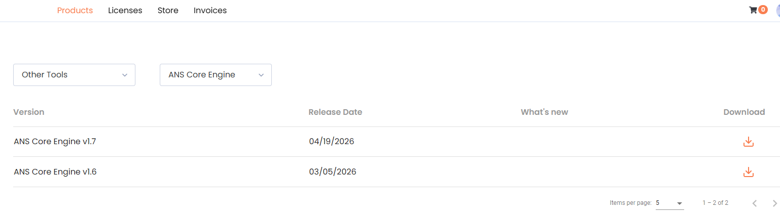 Product> Other Tools> ANS Core Engineto download and installANS Core Enginefrom (one-time only).